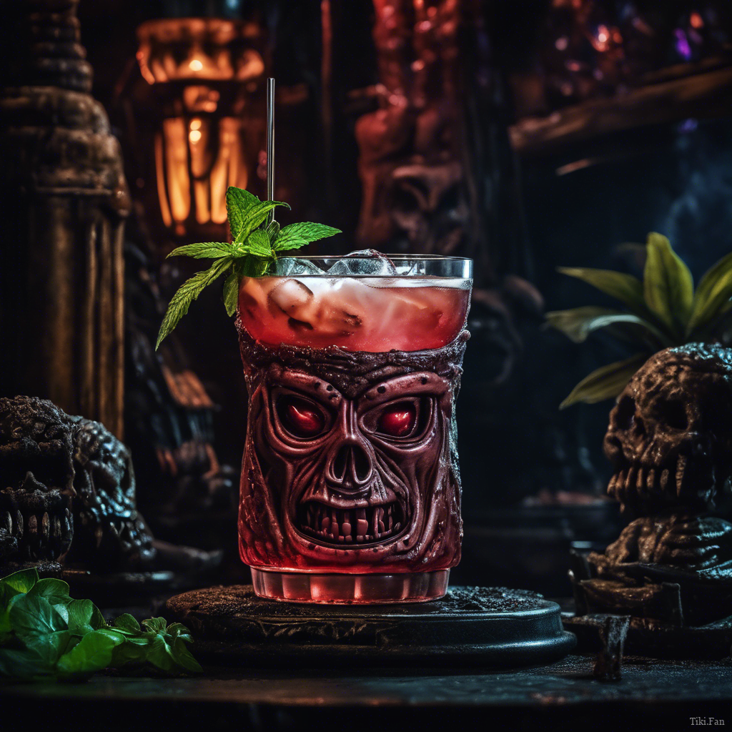 To prepare the Arkham Kula, the ingredients are whip-shaken with crushed ice, which helps to integrate the flavors and create a smooth, frothy texture. The cocktail is then poured into a Zombie glass (Tiki mug) and filled with more crushed ice, giving it a visually stunning presentation that evokes the mysterious atmosphere of Lovecraft’s stories.