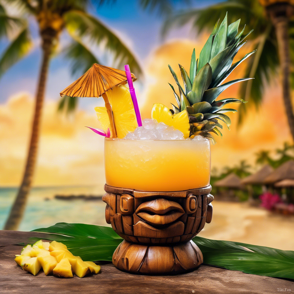 To prepare the drink, simply combine all the ingredients in a blender with crushed ice and flash blend until smooth. Pour the mixture into a Tiki bowl and garnish with a gardenia or other tropical decorations. The result is a visually stunning and deliciously refreshing cocktail that embodies the spirit of Tiki culture.