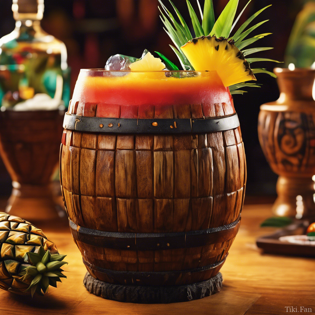 The Rum Barrel is a well-known tiki cocktail that has been featured in various tiki bars and restaurants over the years. It is a favorite among tiki enthusiasts and is often associated with the resurgence of tiki culture. The drink is known for its balanced flavors, combining the pronounced spirit of the drink with a blend of sweet and sour elements. The Rum Barrel is a staple in the world of tiki cocktails and is considered a must-try for anyone interested in tropical, exotic libations.